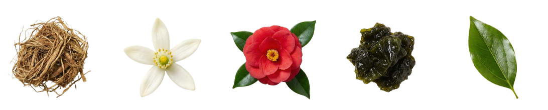 ベチバーとクズ花のハーブウォーター、茶の実油と椿油を特許技術でナノ化し、角質層まで潤いを届ける。希少なスイゼンジノリ由来の「サクラン」が抜群の保湿力で肌を包み、乾燥から守る。理想の皮脂バランスで健やかな肌をキープ。軽やかでベタつかない使用感。